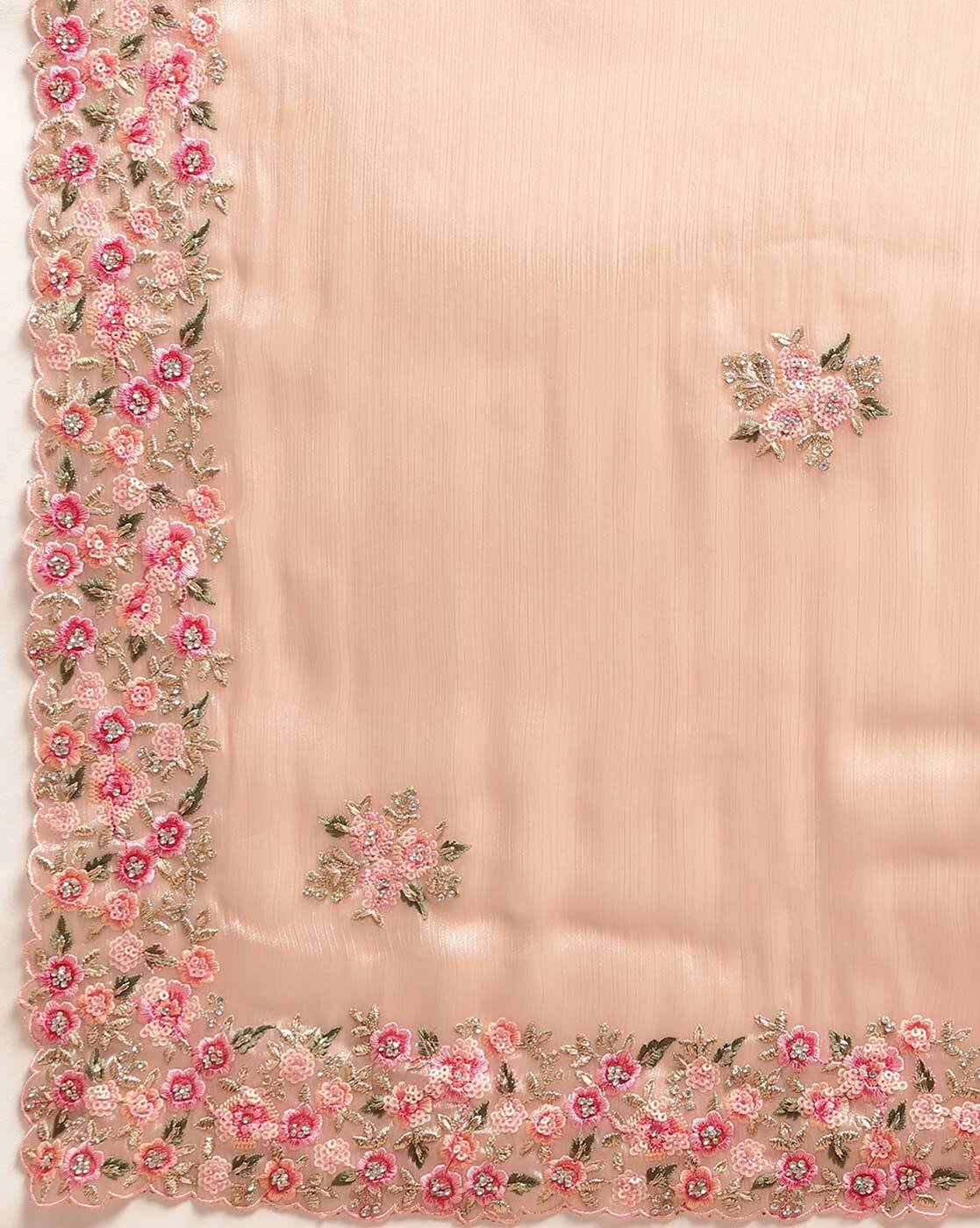 Mohey Peach Machine Resham & Zari Organza Saree Saree