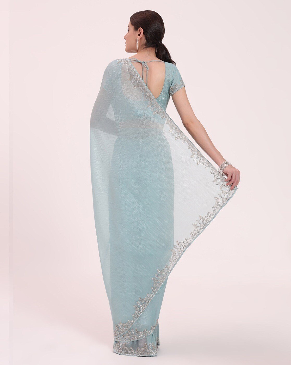 - The last image gives a detailed look of the blouse piece that comes with this saree (The model is wearing a blouse from our in-house wardrobe)