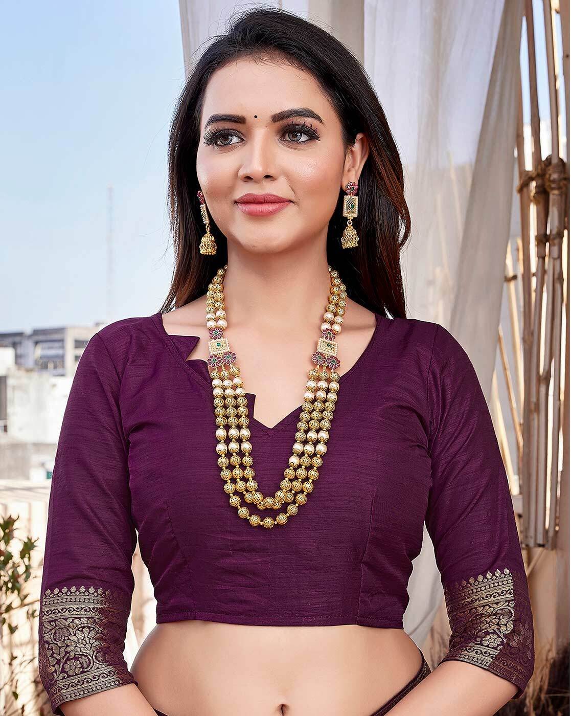 - The last image gives a detailed look of the blouse piece that comes with this saree (The model is wearing a blouse from our in-house wardrobe)