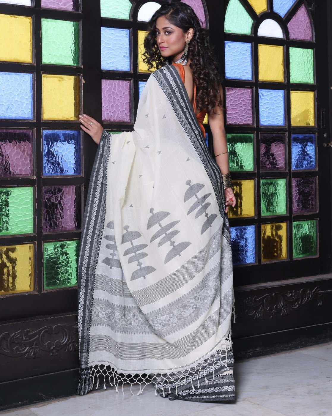 - The last image gives a detailed look of the blouse piece that comes with this saree (The blouse in the images is only for styling purpose)