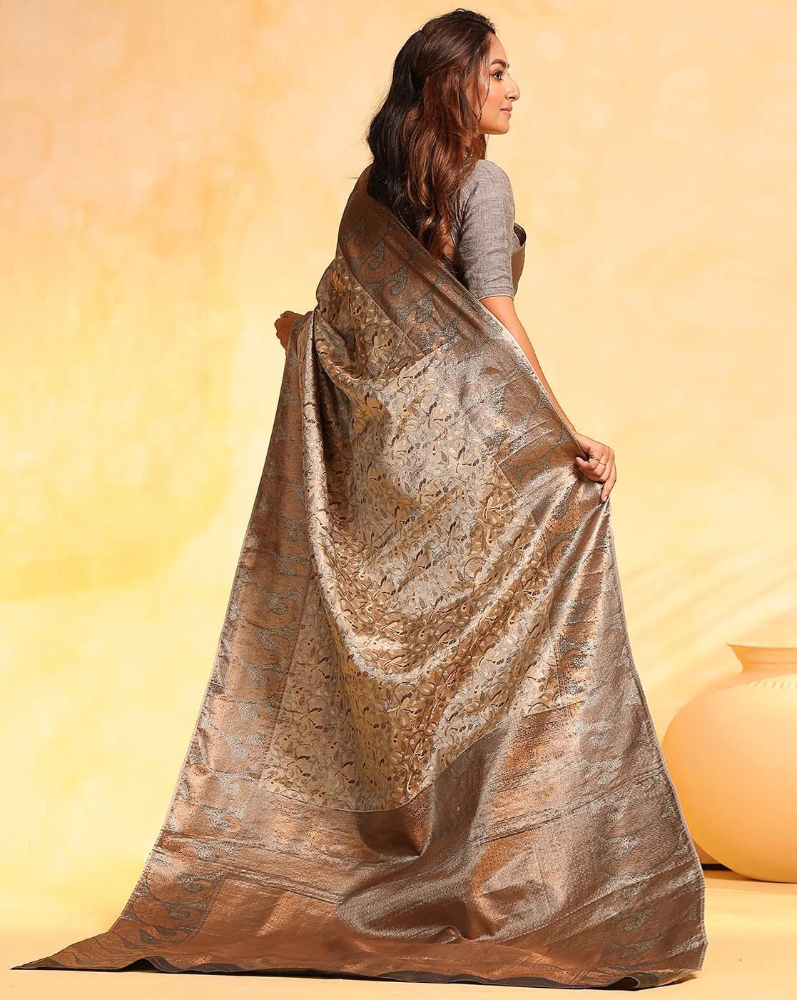 - The last image gives a detailed look of the blouse piece that comes with this saree (The model is wearing a blouse from our in-house wardrobe)